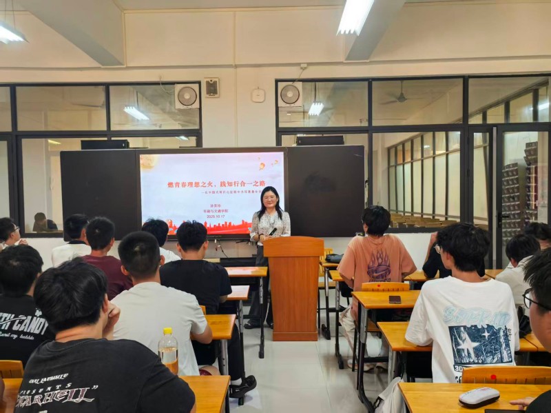 党总支书记孙美玲以《燃青春理想之火,践知行合一之路——在中国式现代化征程中书写青春华章》为题,围绕“青春如何不负?”“青春在哪里用力?”“青春怎样才出彩?”以及“如何贡献青春力量”四个维度展开讲授。她鼓励同学们要树立远大理想,将个人成长融入国家发展大局,在实践中锤炼本领,做到知行合一,努力成为担当民族复兴大任的时代新人。