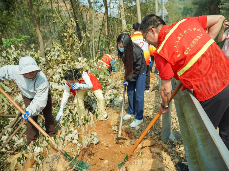 3月12日下午,正值全国植树节,市政与交通学院党总支与总务后勤部党支部在清远市飞来峡镇文洞村联合开展了“共植绿色希望,同筑红色信念”主题党日活动。校党委书记李国章参加,党政办主任马振华、学工部部长张得钦、文洞村党总支书记张清鸿陪同参加。此次活动旨在深入学习贯彻党的二十大精神,践行生态文明理念,增强党员的责任感和使命感,以实际行动为乡村振兴和绿色发展贡献力量。